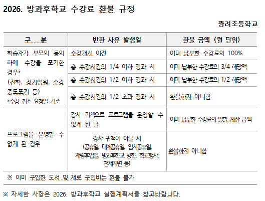 2026. 방과후학교 환불규정